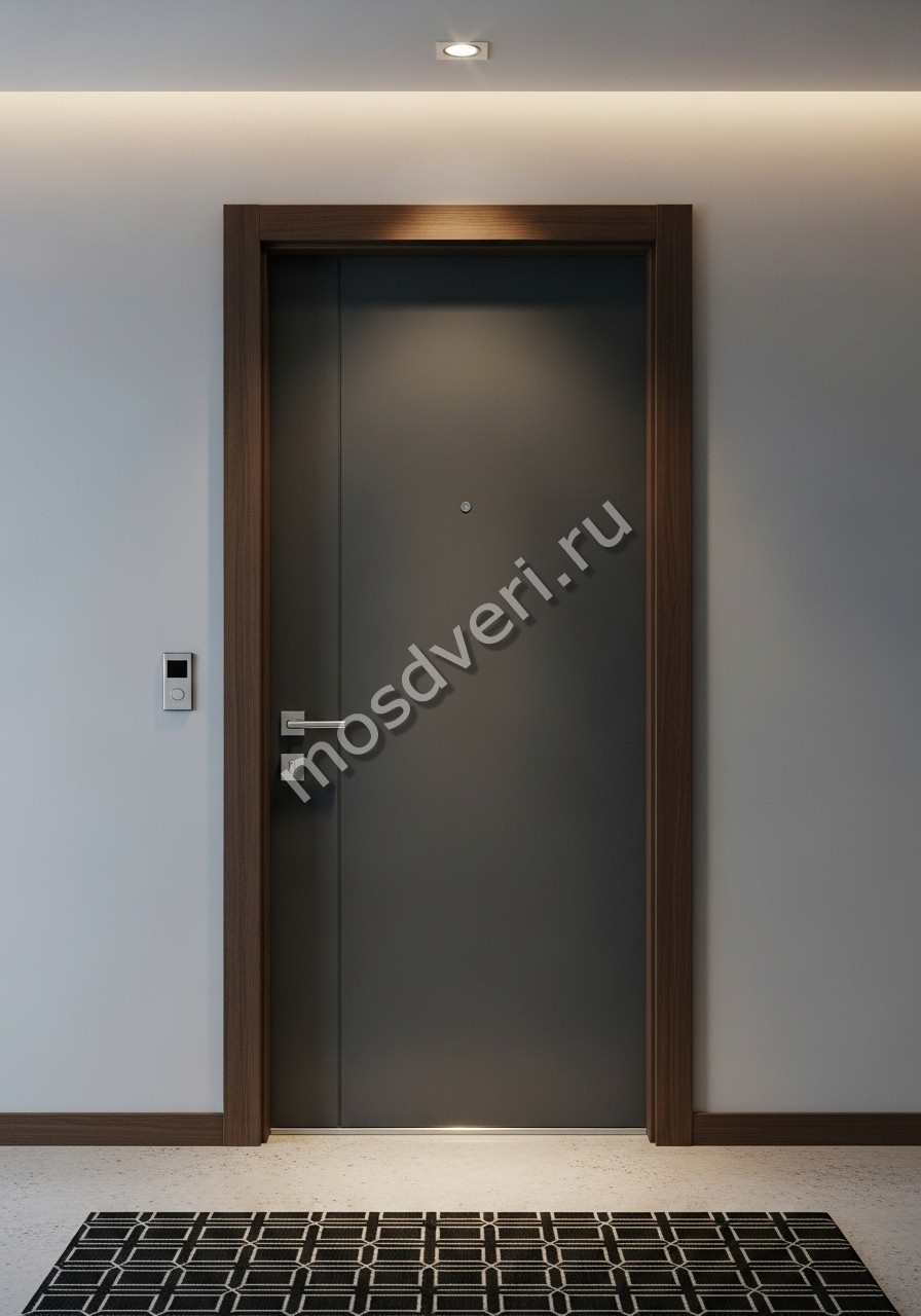 Современная входная дверь темно-серая — сочетает в себе эстетичность и превосходные защитные характеристики.